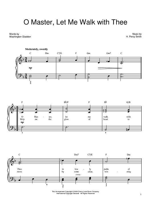 Digital Sheet Music for O Master, Let Me Walk With Thee by H. Percy Smith, Washington Gladden scored for Easy Piano; id:390161