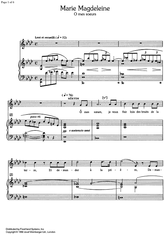 Digital Sheet Music for O mes soeurs from Marie Magdeleine by Jules Massenet scored for Soprano/Piano; id:332352