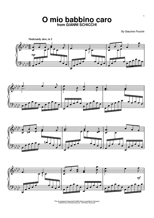 Digital Sheet Music for O Mio Babbino Caro by Giacomo Puccini scored for Piano; id:389502