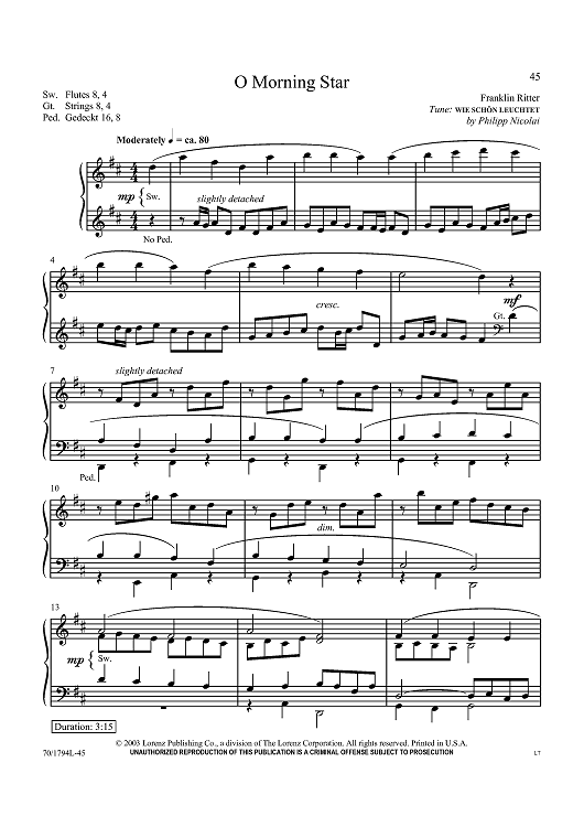 Digital Sheet Music for O Morning Star by Philipp Nicolai, Franklin Ritter scored for Organ Solo; id:437771
