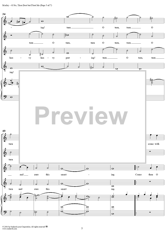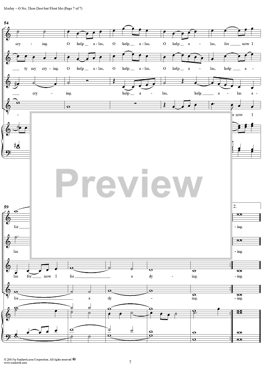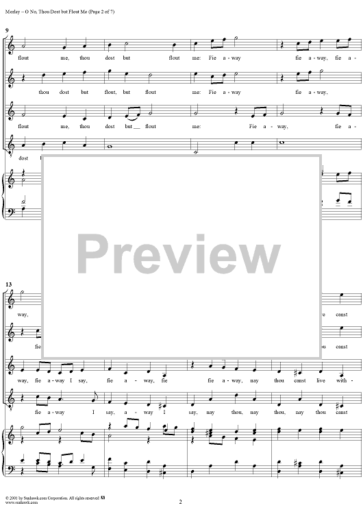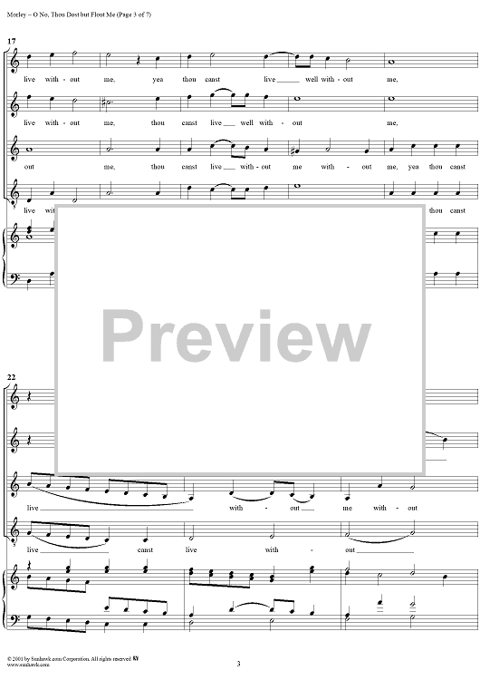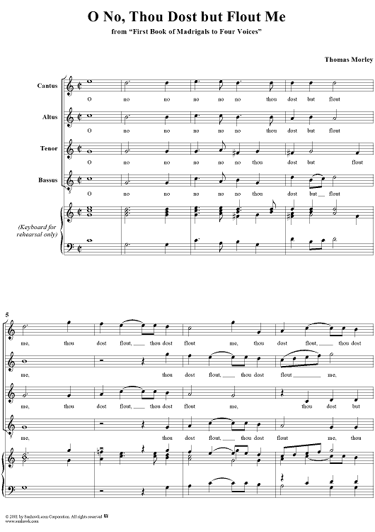 Digital Sheet Music for O No, Thou Dost but Flout Me by Thomas Morley scored for Four-part Mixed Chorus; id:260288