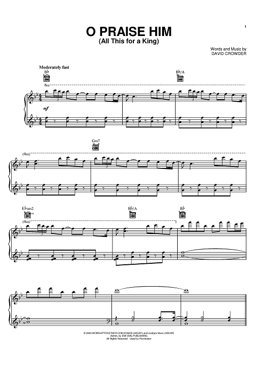 Digital Sheet Music for O Praise Him (All This For A King) by David Crowder scored for Piano/Vocal/Chords; id:374791