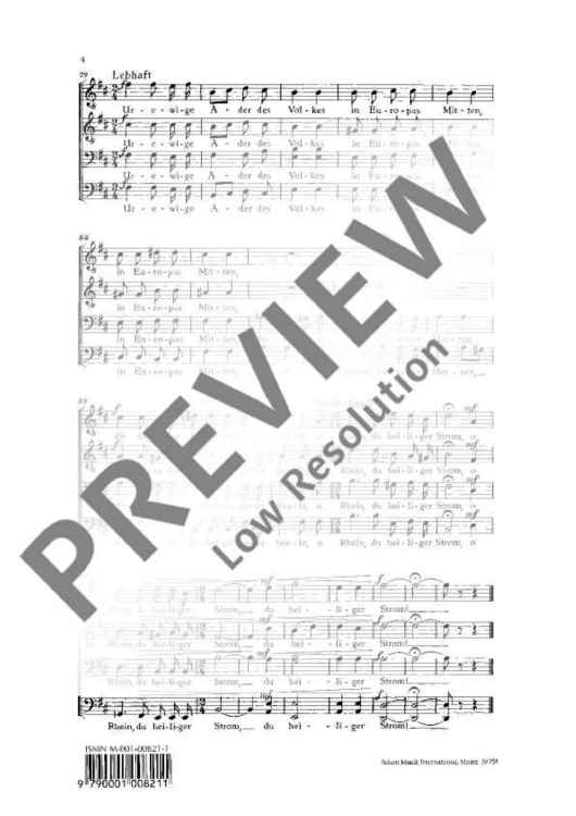 Digital Sheet Music for O Rhein, du heiliger Strom - Choral Score by Bernhard Weber scored for Men's Choir (ttbb) A Cappella Or With Piano Or Brass (3.3.3.1 - Pk); id:471611