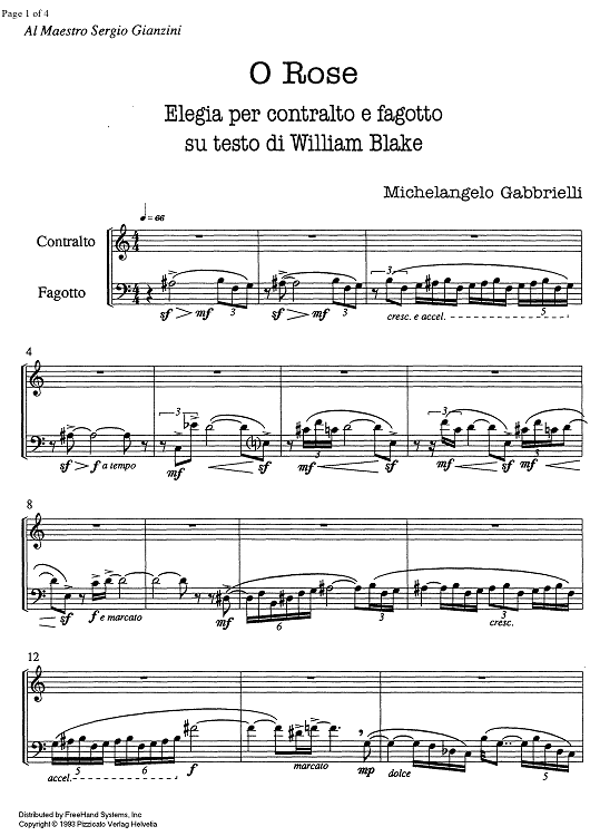 Digital Sheet Music for O Rose by , Michelangelo Gabbrielli scored for Alto/Bassoon; id:334445