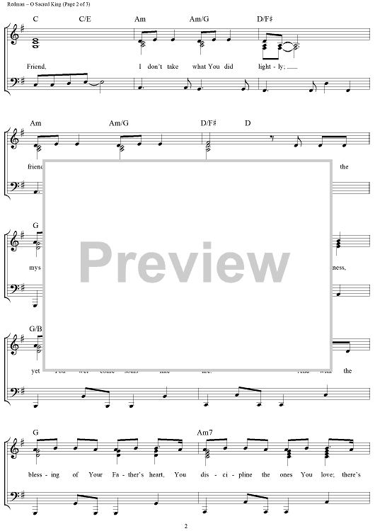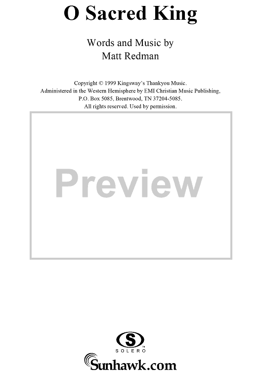 Digital Sheet Music for O Sacred King (Live & Unreserved Version) by Matt Redman scored for Piano/Vocal/Chords; id:220668