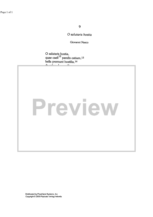 "O salutaris hostia - Lyrics" Sheet Music by Giovanni Nasco