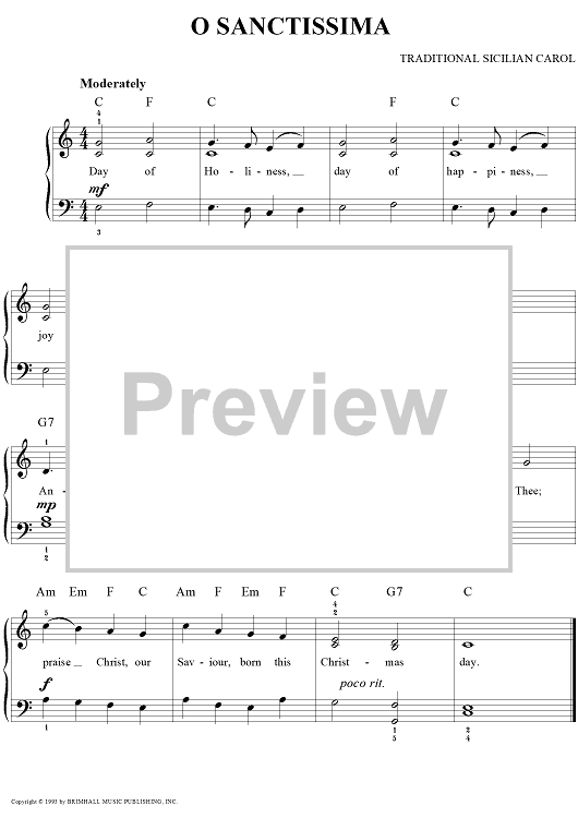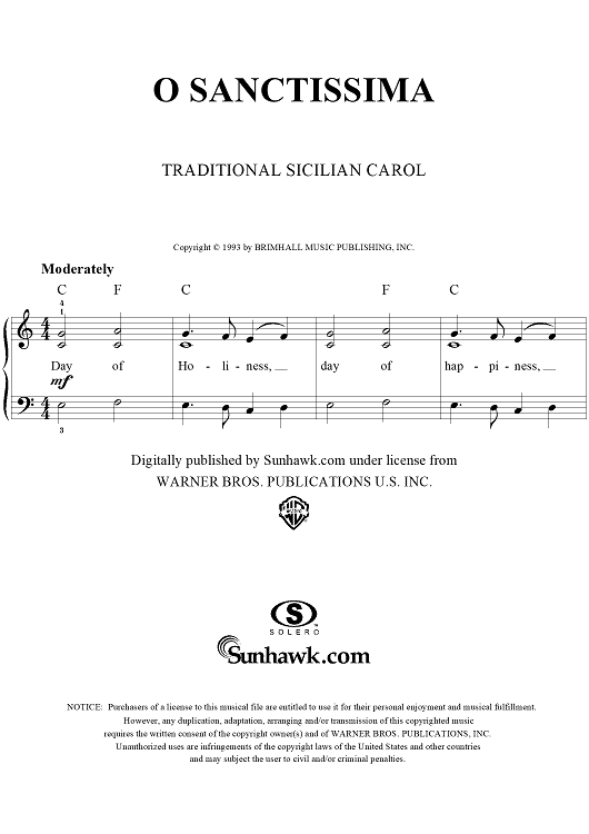 Digital Sheet Music for O Sanctissima by John Brimhall, Traditional scored for Easy Piano/Vocal; id:261102