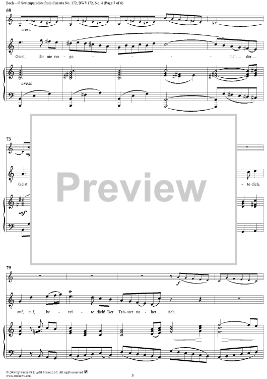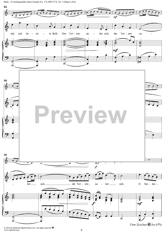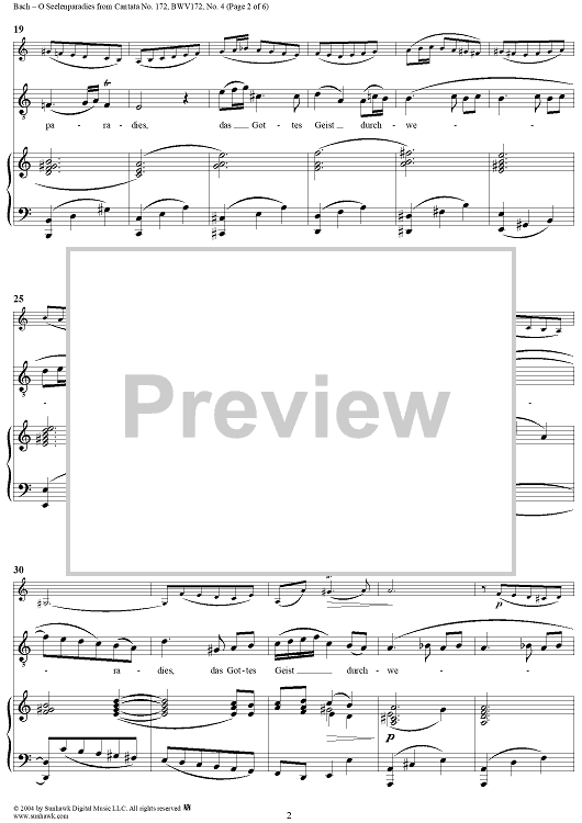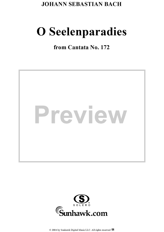 Digital Sheet Music for "O Seelenparadies", Aria, No. 4 from Cantata No. 172: "Erschallet, ihr Lieder" - Piano Score by Johann Sebastian Bach scored for Tenor, Violin or Viola and Piano or Organ; id:303984