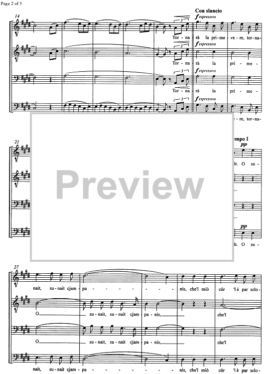 "O sunait, sunait cjampanis - Score" Sheet Music by Daniele Zanettovich