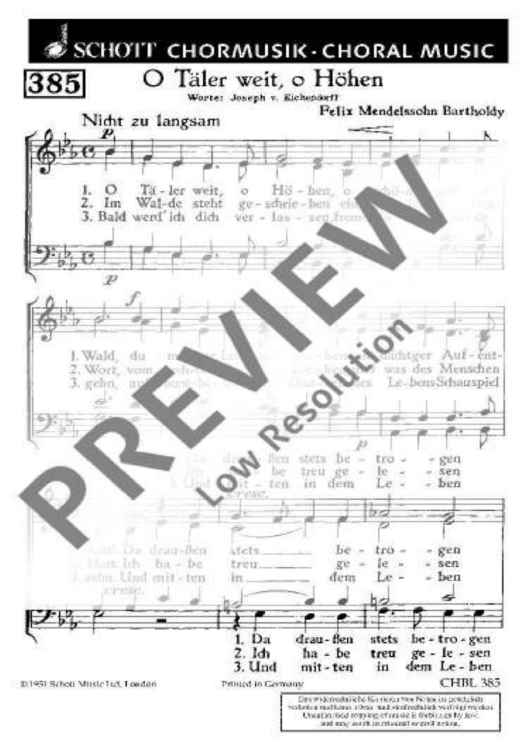 Digital Sheet Music for O Täler weit, o Höhen - Choral Score by Felix Mendelssohn Bartholdy scored for Mixed Choir (satb); id:471993