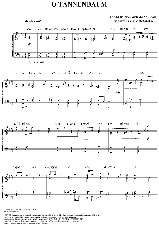 "O Tannenbaum" Sheet Music by Dave Brubeck