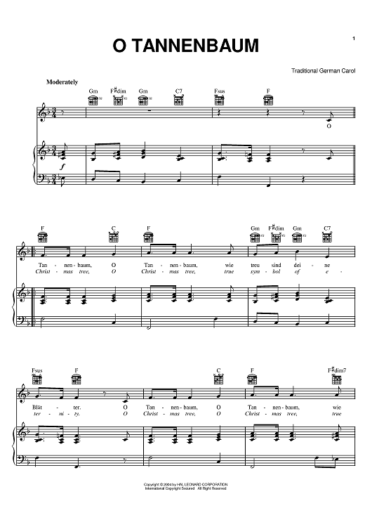Digital Sheet Music for O Tannenbaum by scored for Piano/Vocal/Chords; id:397616