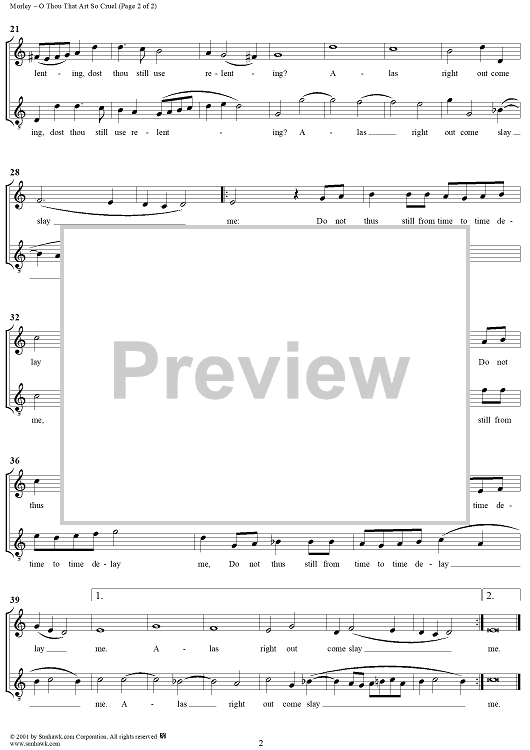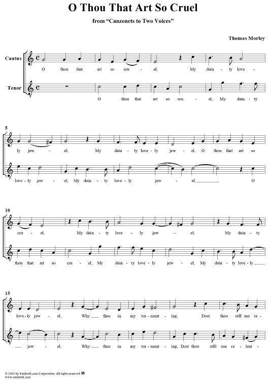 Digital Sheet Music for O Thou That Art So Cruel by Thomas Morley scored for Two-part Mixed Chorus; id:260309