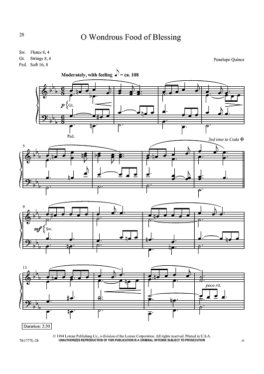 Digital Sheet Music for O Wondrous Food of Blessing by Penelope Quince scored for Organ Solo; id:437681