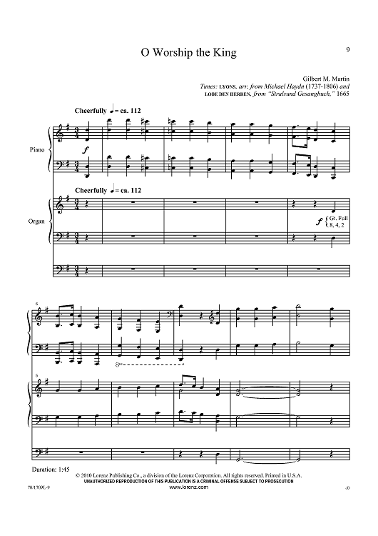 Digital Sheet Music for O Worship the King by Michael Haydn, Gilbert M. Martin, Stralsund Gesangbuch scored for Organ and Piano; id:433523