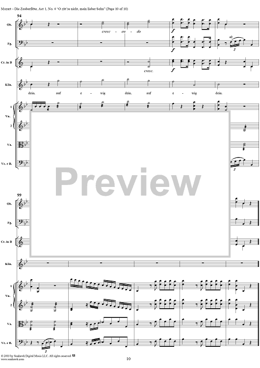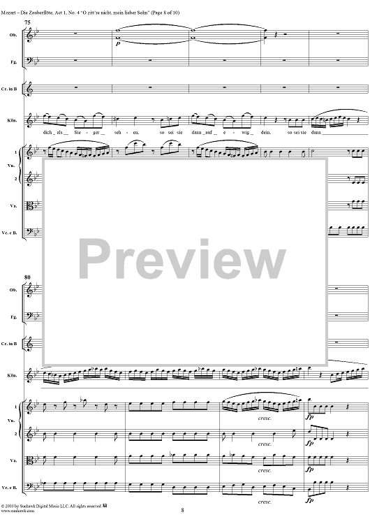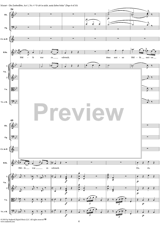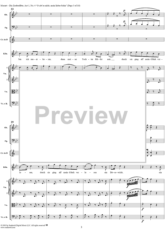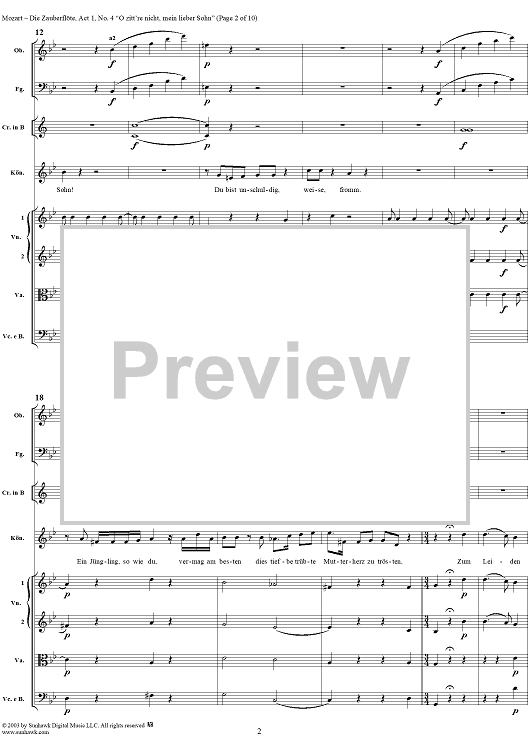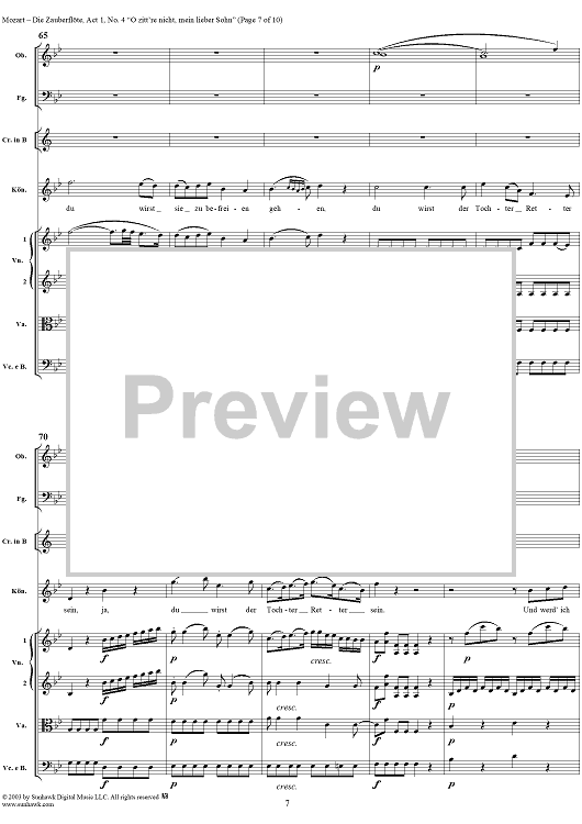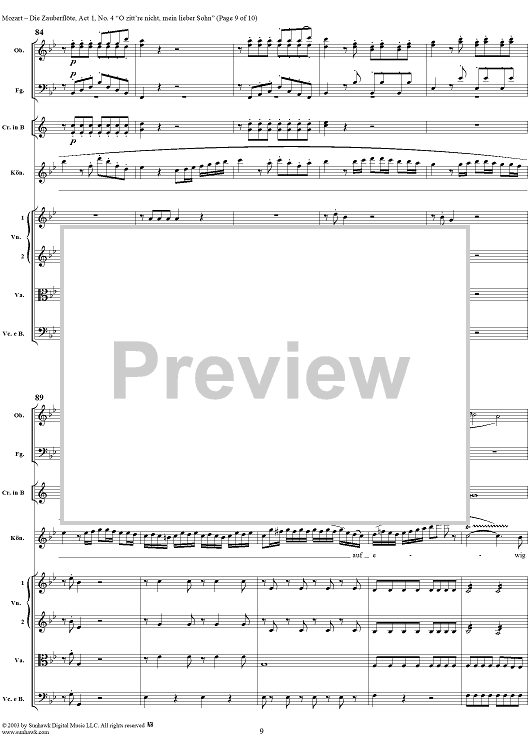 Digital Sheet Music for "O zittre nicht, mein lieber Sohn", No. 4 from "Die Zauberflöte", Act 1 (K620) - Full Score by Wolfgang Amadeus Mozart scored for Voice and Orchestra; id:291498