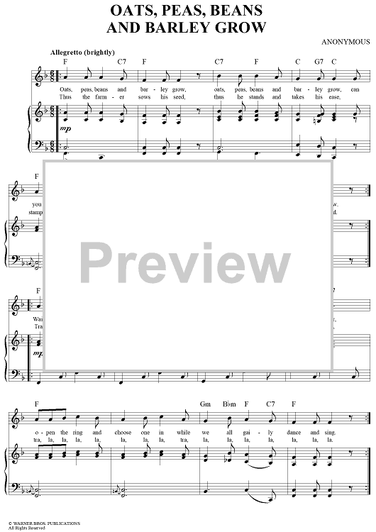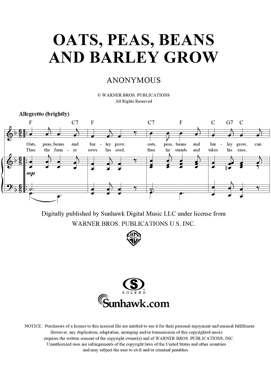 Digital Sheet Music for Oats, Peas, Beans and Barley Grow by Unknown Writer scored for Piano/Vocal/Chords; id:277315