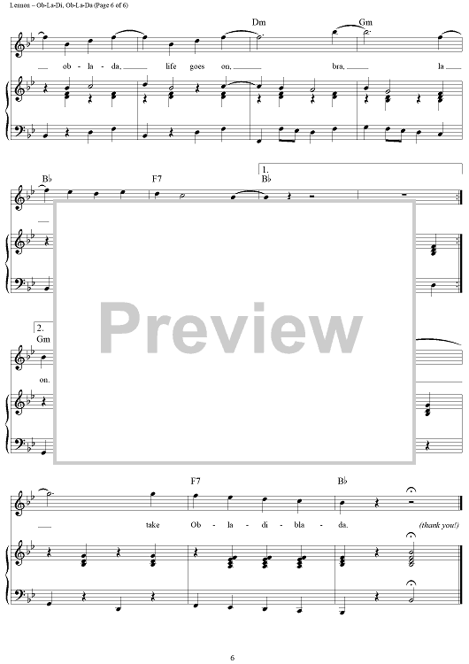 "Ob-La-Di, Ob-La-Da" Sheet Music by The Beatles