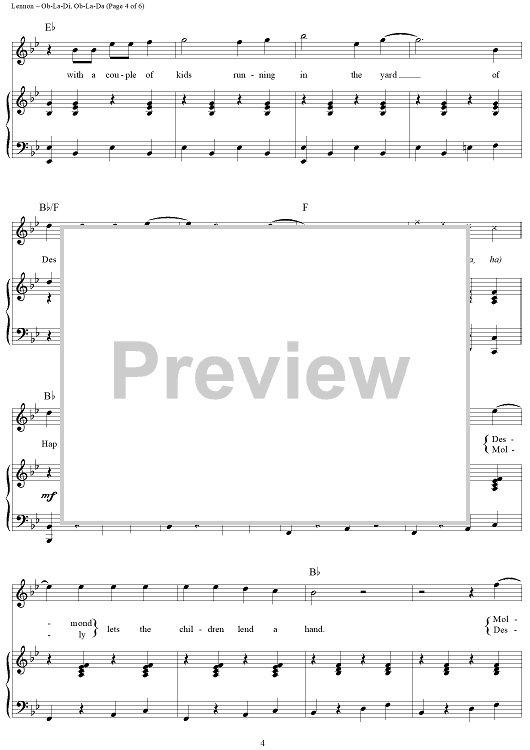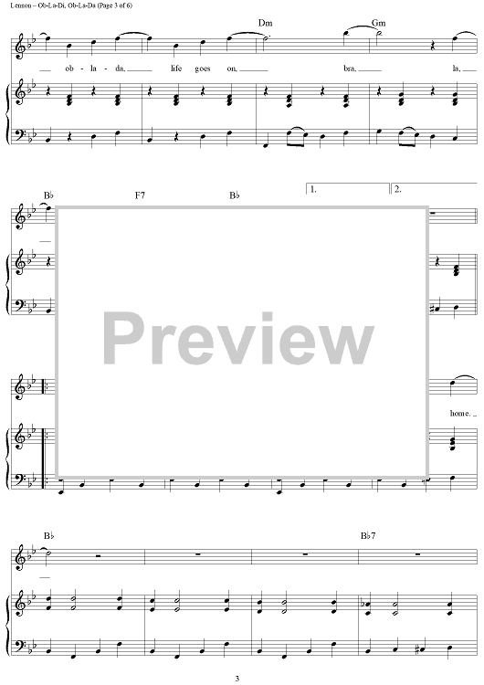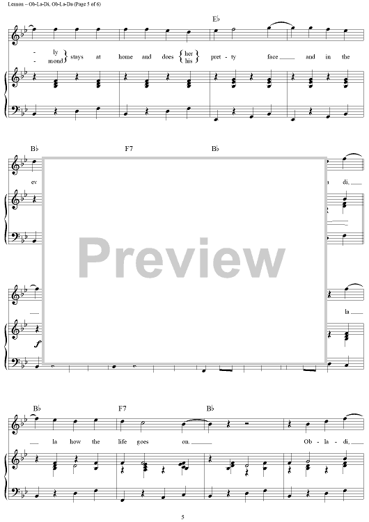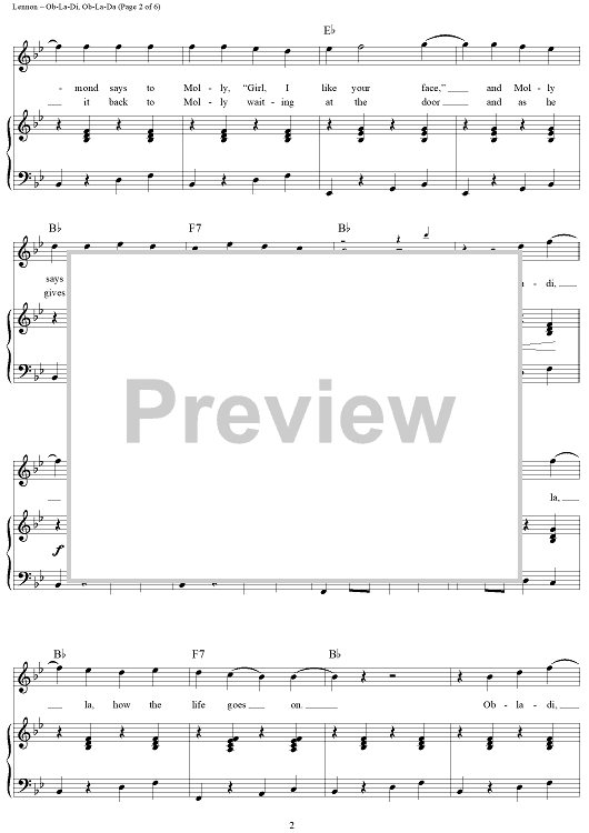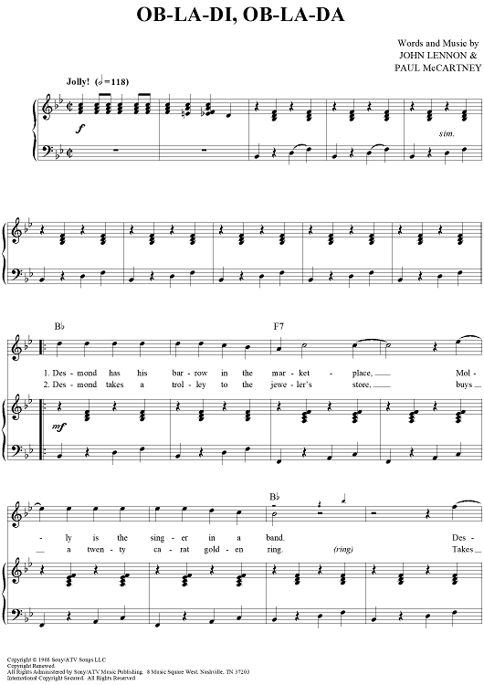 Digital Sheet Music for Ob-La-Di, Ob-La-Da by Paul McCartney, The Beatles, John Lennon scored for Piano/Vocal/Chords; id:363256