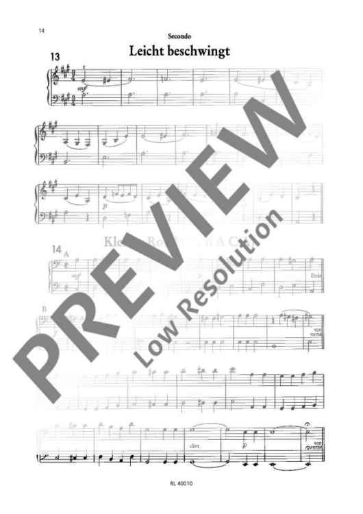 Das Besondere an diesem Heft ist, dass beide Parts leicht zu spielen sind. Die Melodien im Primo-Part (meistens für beide Hände gleich) überschreiten nur selten den Quintraum und sind nicht nur für das Ohr, sondern auch für die Finger leicht "begreifbar". Die Stücke stellen auch eine gute Übung im Prima-Vista-Spiel dar, vor allem im Secondo-Part, der auch von fortgeschrittenen Schülern oft schwerer gelesen wird als der Primo-Part.