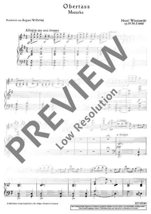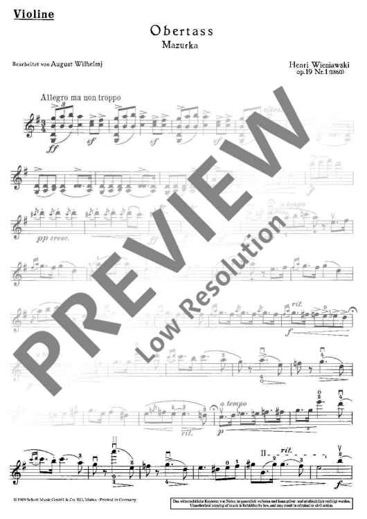 Digital Sheet Music for Obertass by Henryk Wieniawski, August Wilhelmj scored for Violin And Piano; id:481142