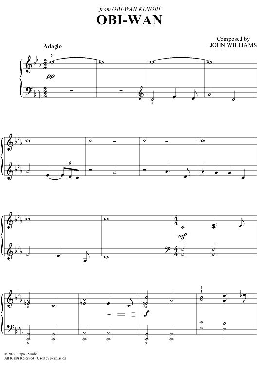 Digital Sheet Music for Obi-Wan - from Obi-Wan Kenobi by John Williams scored for Easy Piano; id:497176