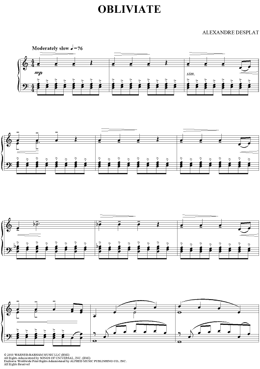 Digital Sheet Music for Obliviate by Alexandre Desplat scored for Piano Solo; id:418345
