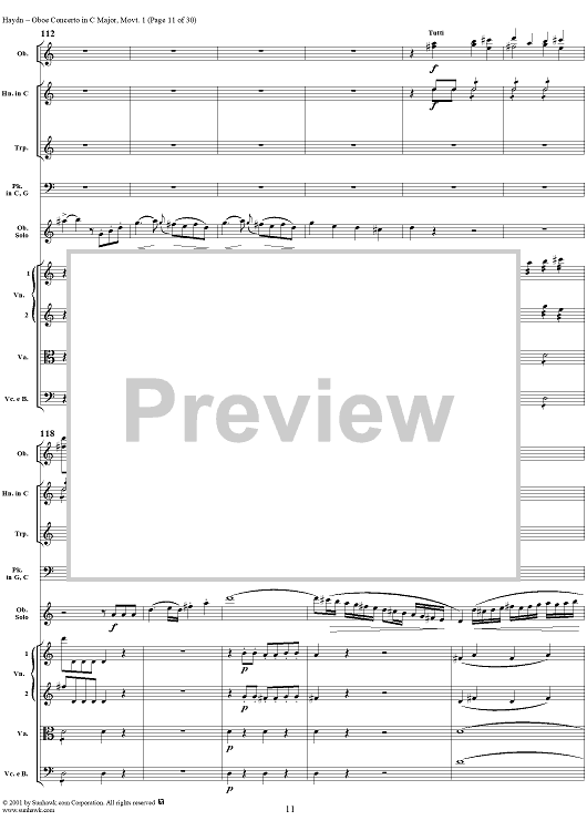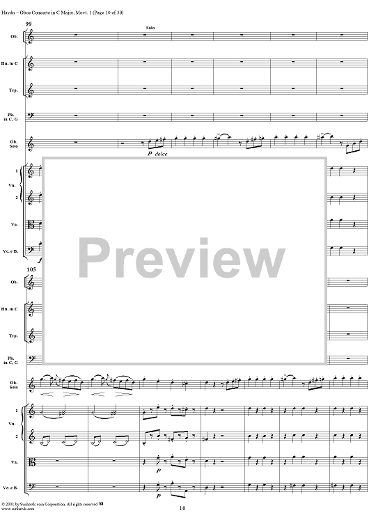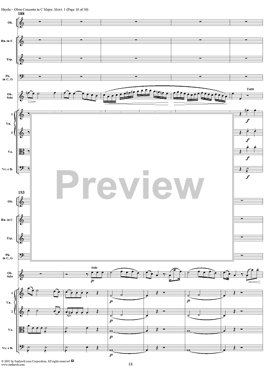 "Oboe Concerto in C Major, HobVIIg/C1 Movement 1 - Full Score" Sheet Music by Franz Joseph Haydn