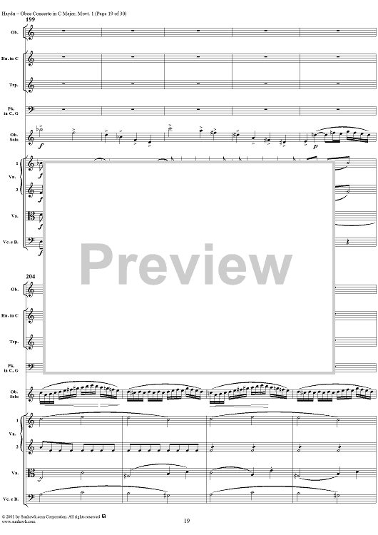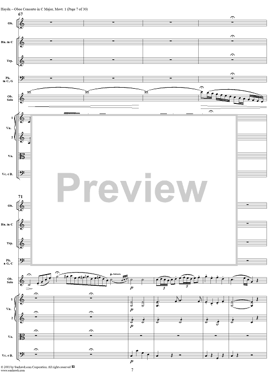 Digital Sheet Music for Oboe Concerto in C Major, HobVIIg/C1 Movement 1 - Full Score by Franz Joseph Haydn scored for Orchestra; id:267134