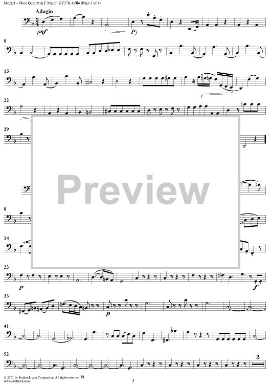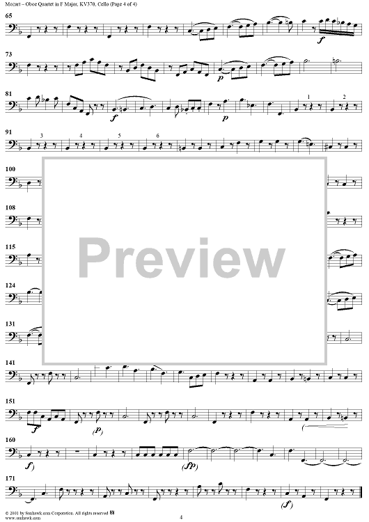 Digital Sheet Music for Oboe Quartet, K370 - Cello by Wolfgang Amadeus Mozart scored for Oboe Quartet; id:252655