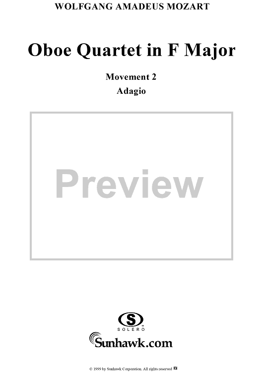 "Oboe Quartet, K370, Movement 2 - Score" Sheet Music by Wolfgang Amadeus Mozart