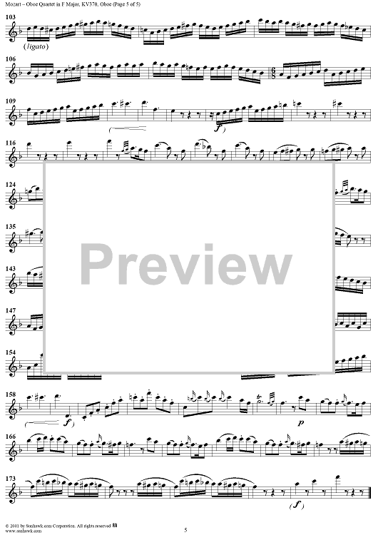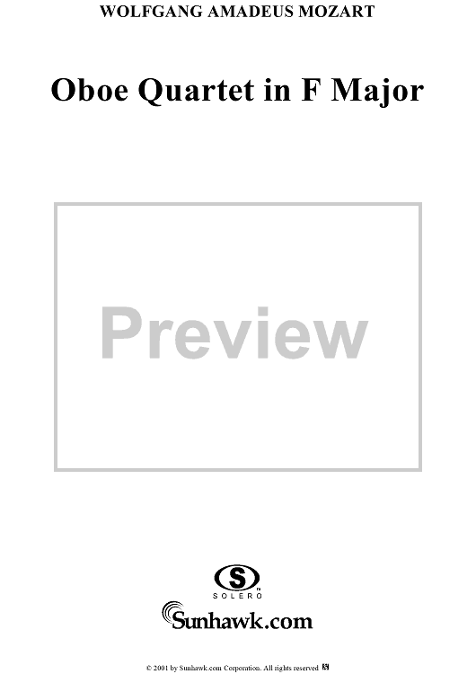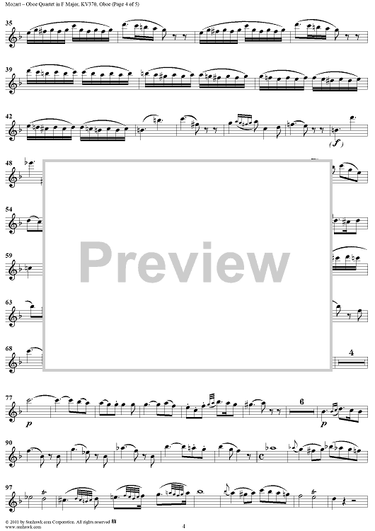 Digital Sheet Music for Oboe Quartet, K370 - Oboe by Wolfgang Amadeus Mozart scored for Oboe Quartet; id:252686