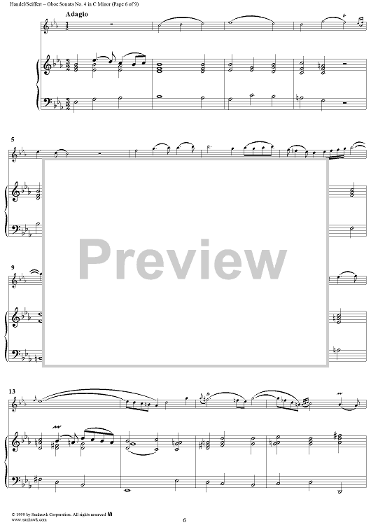 "Oboe Sonata No. 4 in C Minor - Piano" Sheet Music by George Frideric Handel