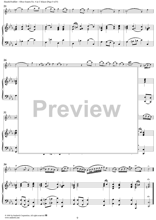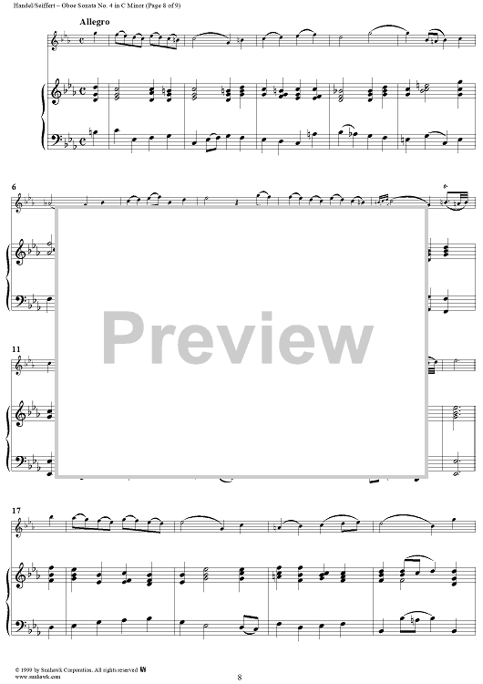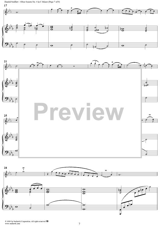 Digital Sheet Music for Oboe Sonata No. 4 in C Minor - Piano by George Frideric Handel scored for Oboe/Piano/Continuo; id:113684
