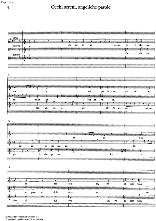"Occhi sereni, angeliche parole" Sheet Music by Alessandro Orologio