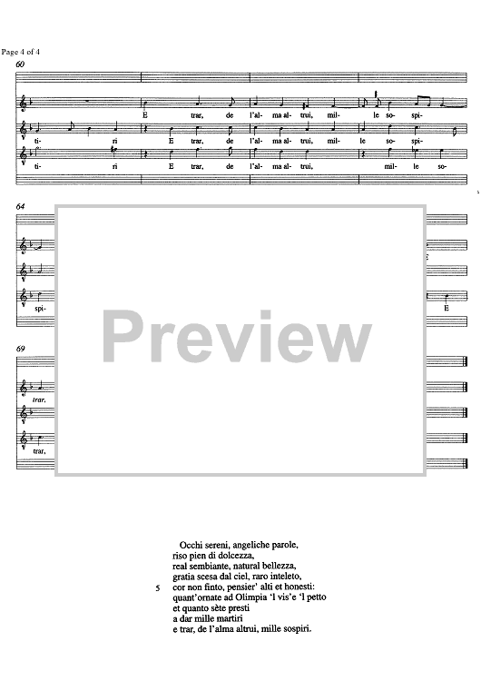 Digital Sheet Music for Occhi sereni, angeliche parole by , Alessandro Orologio scored for SATB Choir; id:333992