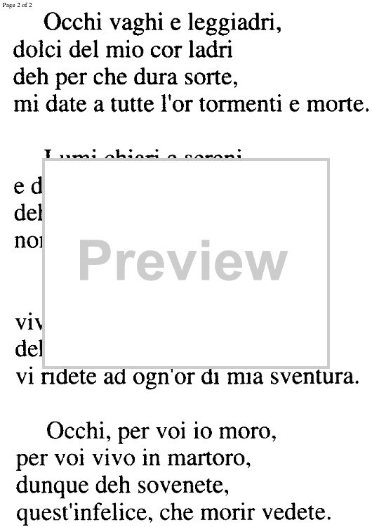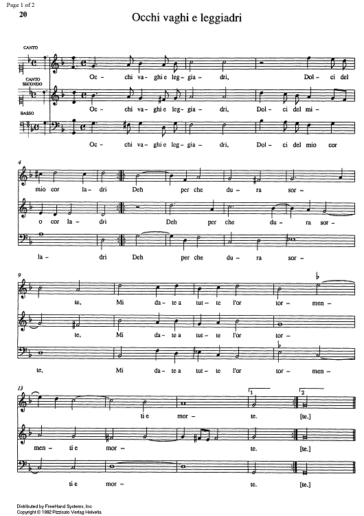 "Occhi vaghi e leggiadri" Sheet Music by Alessandro Orologio