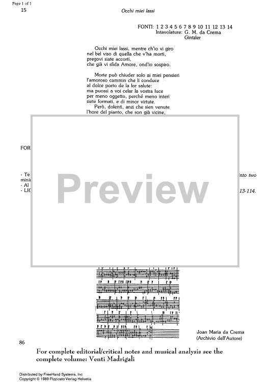 "Occi miei lassi from 20 Madrigali - Notes" Sheet Music by Jacques Arcadelt