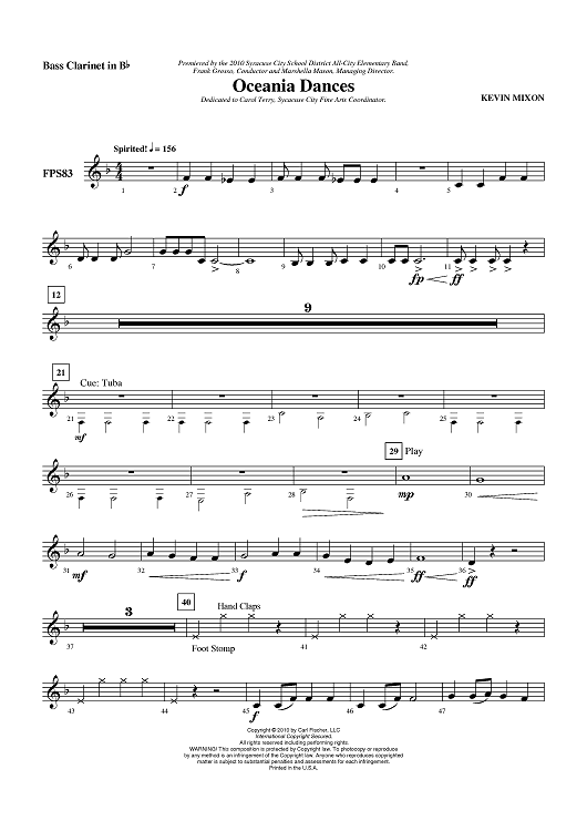 "Oceania Dances - Bass Clarinet in B-flat" Sheet Music by Kevin Mixon