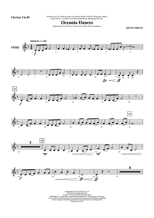 "Oceania Dances - Clarinet 2 in B-flat" Sheet Music by Kevin Mixon