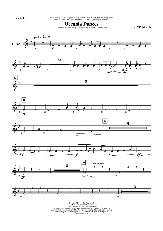 "Oceania Dances - Horn in F" Sheet Music by Kevin Mixon