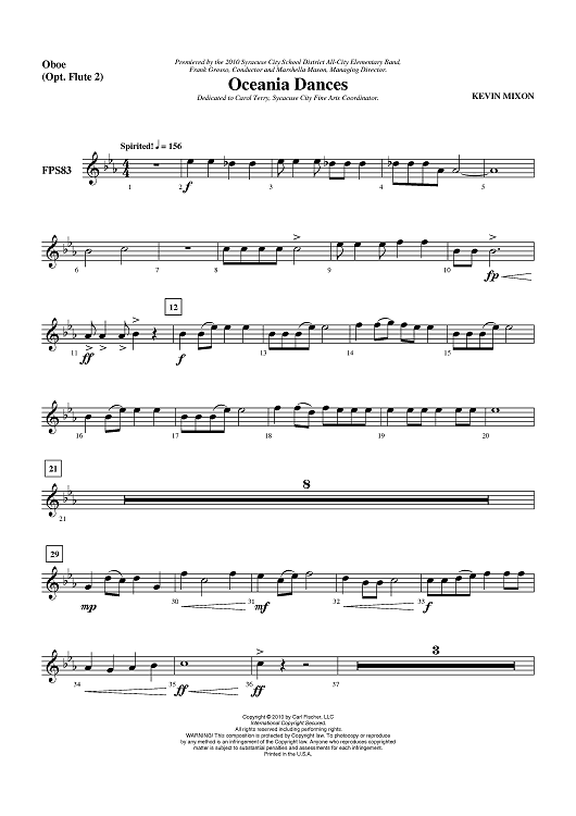 "Oceania Dances - Oboe (Opt. Flute 2)" Sheet Music by Kevin Mixon