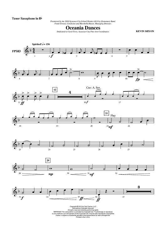 "Oceania Dances - Tenor Sax" Sheet Music by Kevin Mixon