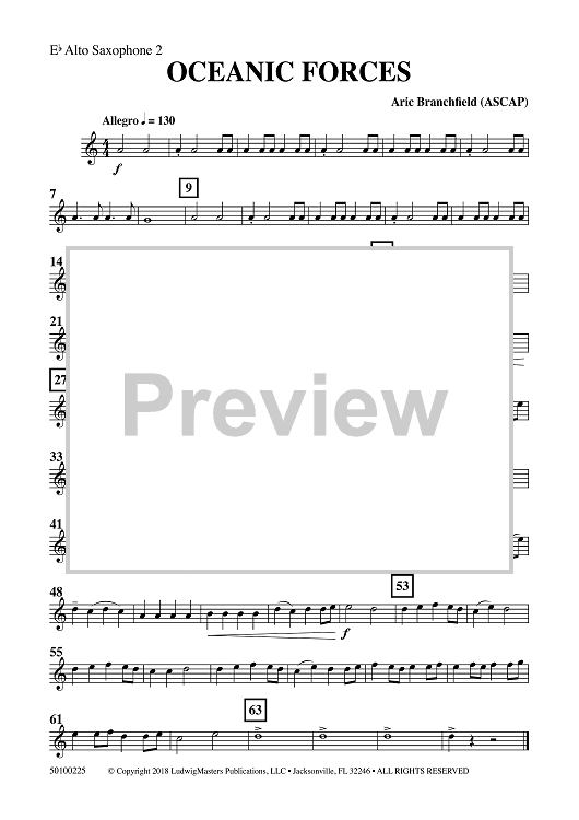 Digital Sheet Music for Oceanic Forces - Eb Alto Saxophone 2 by Aric Branchfield scored for Concert Band; id:507304