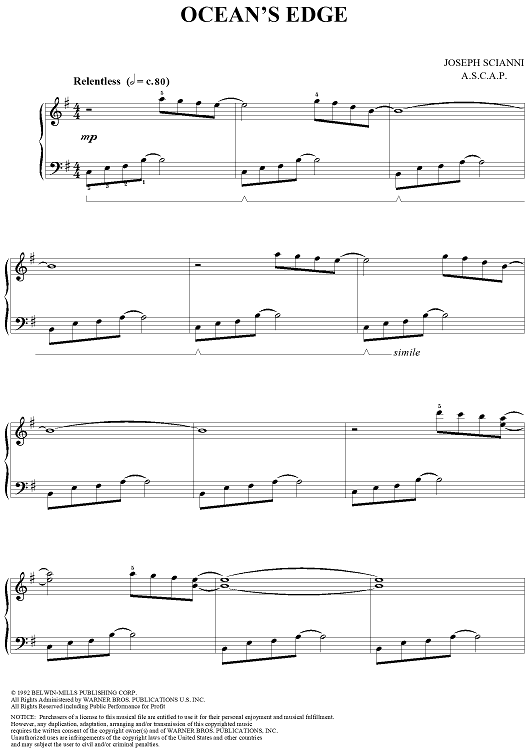 Digital Sheet Music for Ocean's Edge by Joseph Scianni scored for Piano Solo; id:257207