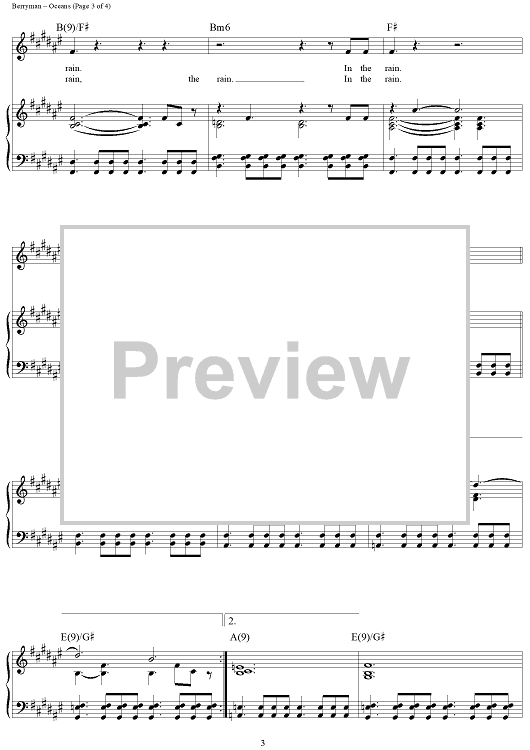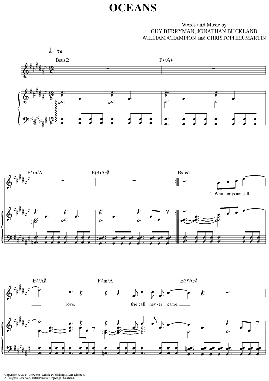 Digital Sheet Music for Oceans by Chris Martin, Coldplay, Jonny Buckland, Guy Berryman, John Henry Hopkins scored for Piano/Vocal/Chords; id:444902