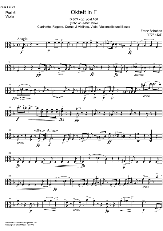 "Octet F Major D803 - Viola" Sheet Music by Franz Schubert