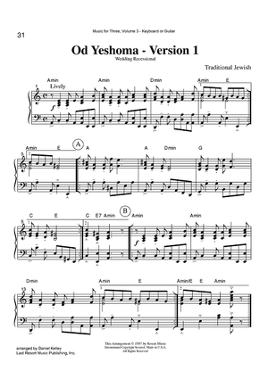 Digital Sheet Music for Od Yeshoma - Versions I & 2 - Wedding Recessional - Keyboard or Guitar by , Daniel Kelley, Traditional Jewish scored for Instrumental Trio; id:424155