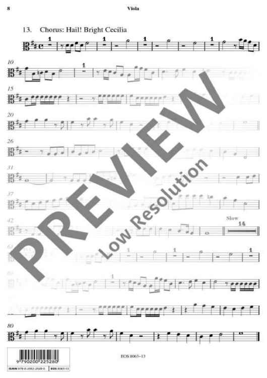 "Ode on St. Cecilia's Day 1692 - Viola" Sheet Music by Henry Purcell
