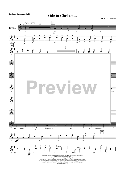 "Ode to Christmas - Baritone Saxophone" Sheet Music by Bill Calhoun
